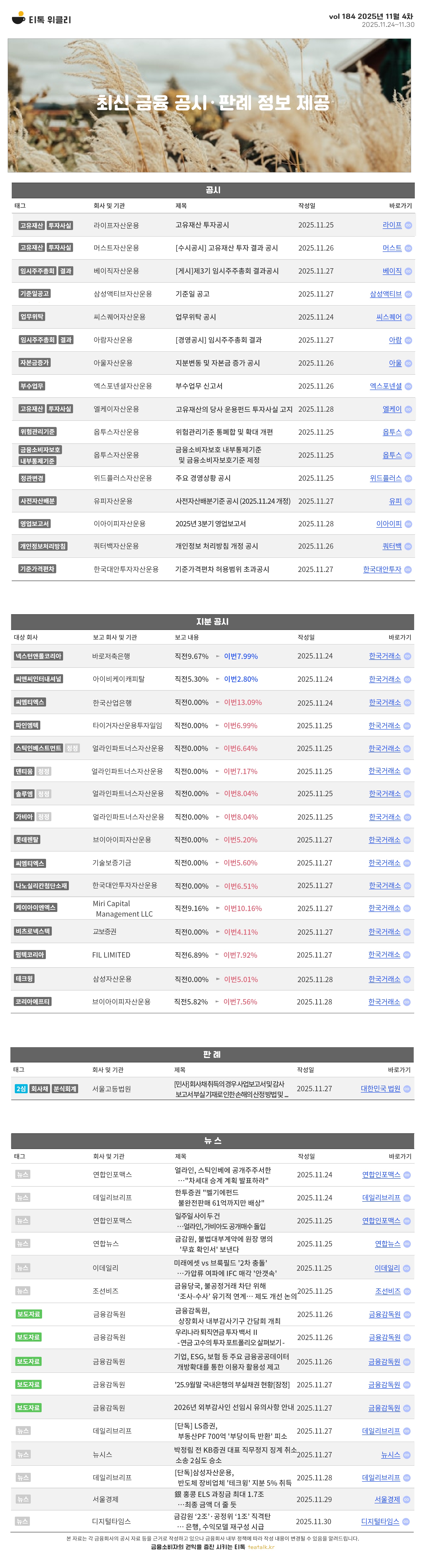 ✅ 지난주 한국거래소 지분 공시 주요 내용