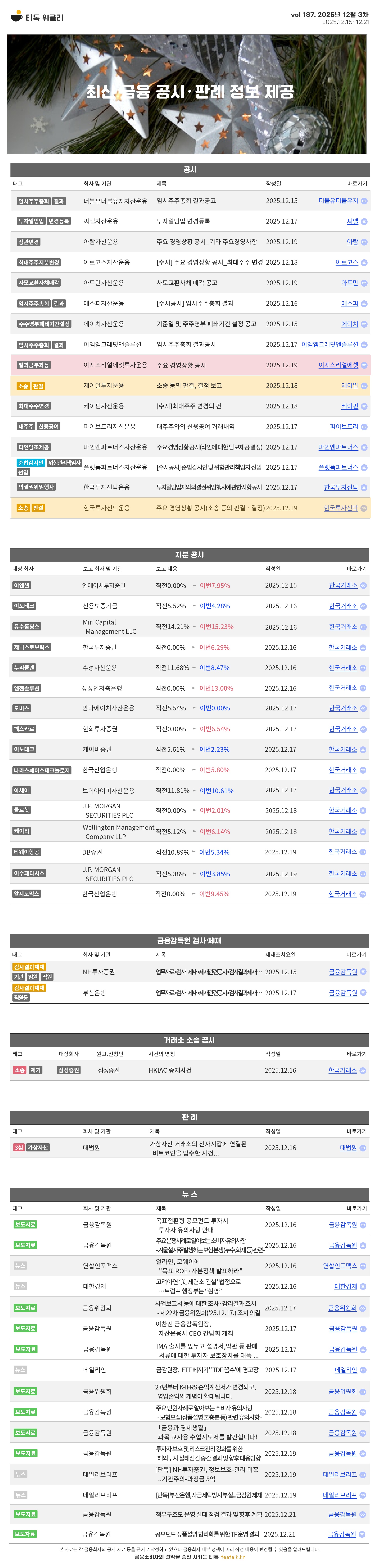 ✅ 지난주 금융투자회사 공시 中 주요 소송 내용 요약
